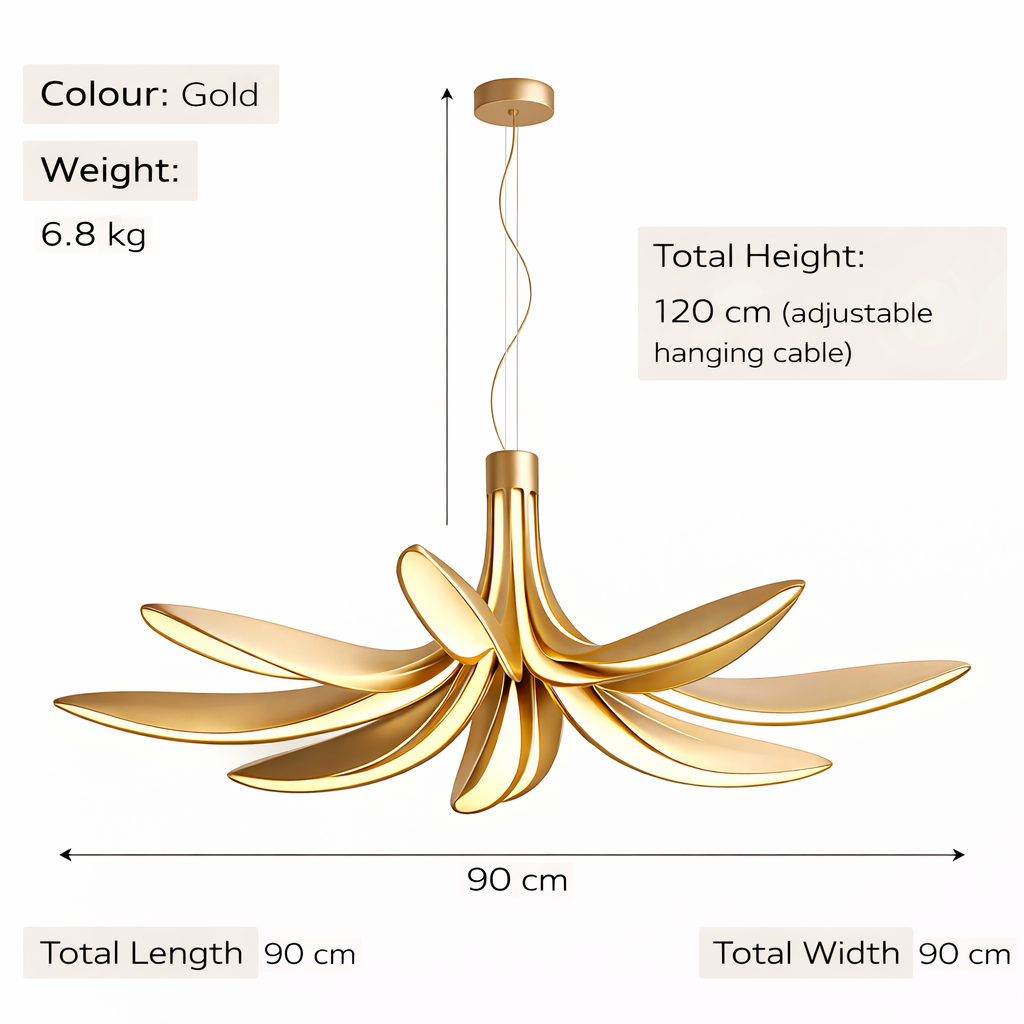 Ideal for dining tables, living rooms, stairwells, or open-plan interiors where a bold design feature is desired.